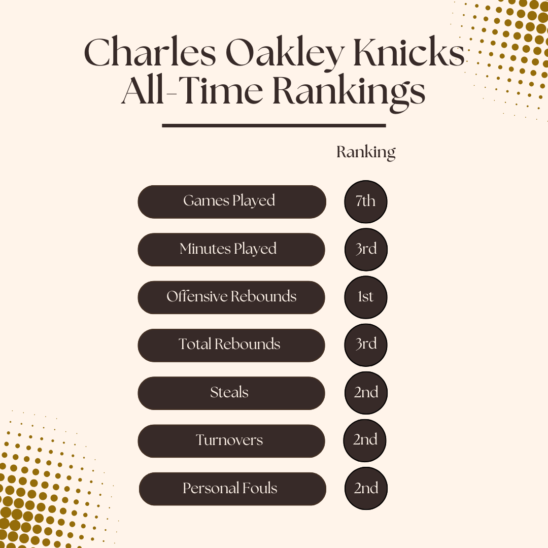 If you look through the Knicks record books, Oakley’s name is filled throughout. He is in the top ten in seven different categories.
